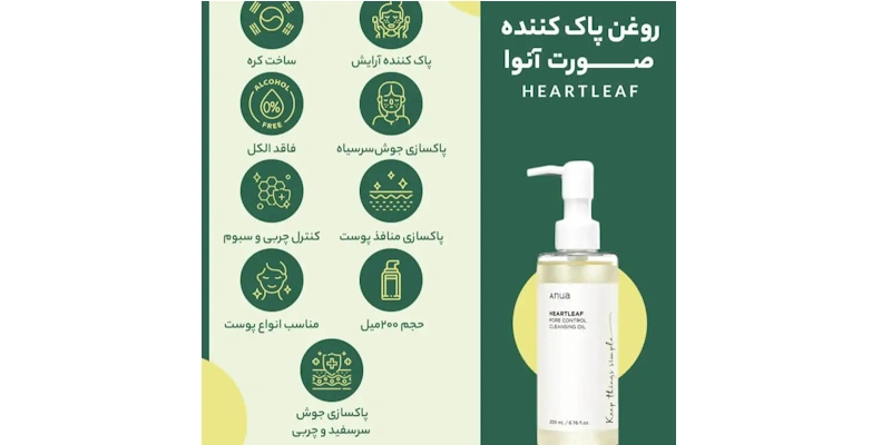ویژگیهای روغن پاک کننده و کنترل منافذ آنوا: پاکسازی پوست و منافذ پاک کننده ایدهآل آرایش و میکاپ تسکین التهاب و قرمزی جلوگیری از انسداد منافذ شفاف و درخشان کننده پوست کوچک کننده سر منافذ بدون سوزش و تحریک چشم ها بافت روغنی غیر حساسیت زا مناسب انواع پوست حساس