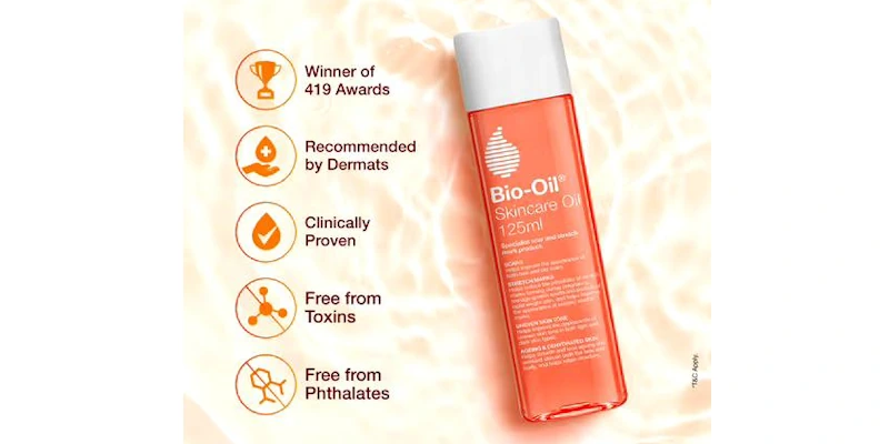 بایو اویل برنده بیش از 400 جایزه محصولات مراقبت از پوست است و از سال 2002 تا به امروز در 23 کشور جهان به عنوان پرفروش ترین محصول برطرف کننده اسکار و استرچ مارک محسوب می شود. روغن بایو اویل حاوی عصاره های گیاهی و انواع ویتامین ها است که به عمق پوست نفوذ کرده و سبب لطافت و نرمی پوست می شود. دارای خاصیت التیام بخشی قوی است و به یک دست شدن سطح پوست کمک می کند.