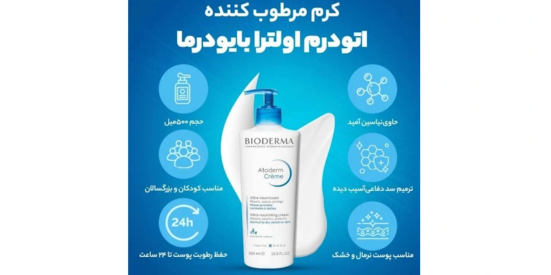 مرطوب کننده اتودرم اولترا بایودرما ساخت فرانسه بوده و باعث آبرسانی و حفظ رطوبت تا 24 ساعت در پوست های نرمال، خشک و حساس میشود. کرم مرطوب کننده بایودرما باعث تغذیه عمقی پوست و تقویت سد دفاعی پوست شده و از نفوذ مواد محرک درون پوست جلوگیری میکند. کرم آبرسان بایودرما حاوی کمپلکس ویتامین PP و دو نوع قند بوده که با حفظ رطوبت در لایه های بالایی پوست و جلوگیری از خروج و تبخیر رطوبت باعث افزایش نرمی و لطافت پوست میشود.