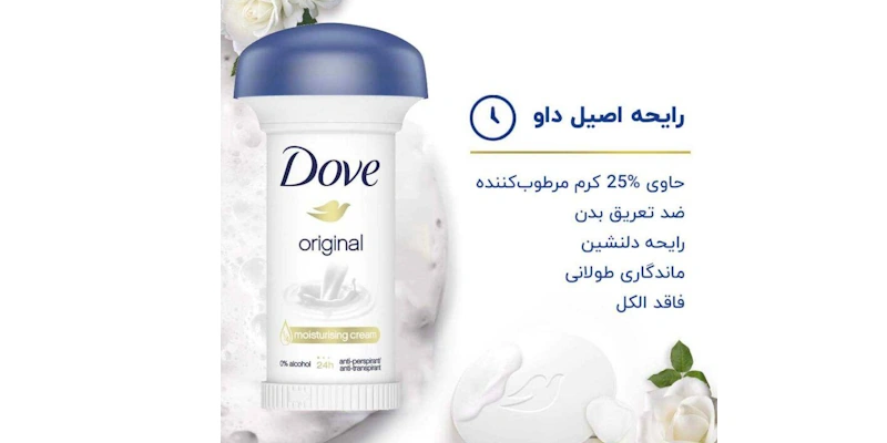 برند: داو-Dove حجم: ۵۰ میلی لیتر حاوی گلیسرین،حاوی ویتامین E,فاقد الکل،مناسب برای انواع پوست حتی پوست های حساس