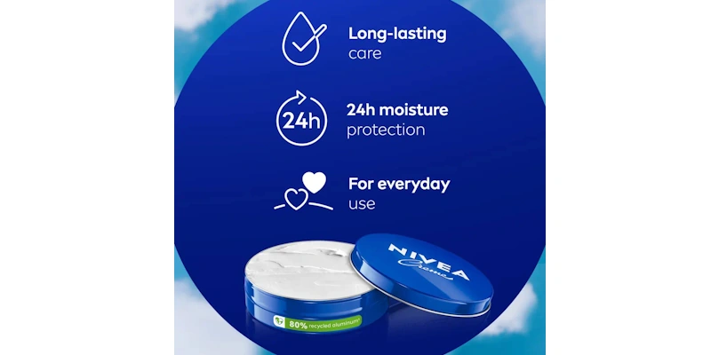 کرم قوطی فلزی آبی نیوا NIVEA از کرم های مرطوب کننده پوست قدیمی می باشد که در سایزهای مختلفی چون کوچک 60 میل، سایز متوسط 150 میل، سایز بزرگ 250 میل عرضه شده است. کرم مرطوب کننده نیوآ NIVEA دارای گلیسیرین است که میزان نرم کنندگی و چرب کنندگی بسیار بیشتری دارد. به همین خاطر ارتجاع پوست شما را باز می گرداند و کمک می کند پوست دیرتر دچار چین و چروک شود. کرم مرطوب کننده نیوا فلزی NIVEA دارای ویتامین B5 است که کمک می کند پوست جوان تر باقی بماند و حتی جوان شود. فقط کافی است مرتباً پوستتان را چرب کنید و از خشکی نجات دهید. این کرم مرطوب کننده و نرم کننده مواد شیمیایی مضر و حساسیت زایی ندارد.