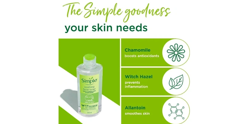 تونر تسکین دهنده پوست مدل کایند تو اسکینسوتینگ سیمپل یکی از ملایم ترین تونرهای صورت با اثربخشی ایده آل است. این تونر حاوی ترکیبات مفیدی از جمله پرو ویتامین B5، عصاره گل بابونه، فندق جادوگر و آلانتوئین می باشد. این مواد به تقویت پوست و حفظ شادابی و طراوت آن کمک می کنند. تونر صورت سوتینگ سیمپل سری کایند تو اسکین همچنین هر گونه آثار باقیمانده از مواد آرایشی، آلودگی و ناخالسی های پوست را از بین می برد. در نتیجه پوستی نرم و تمیز و تازه به شما می بخشد.
